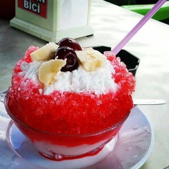 Tıkla veGörseli Büyüt:Bici Bici2 litre su 1 bardak suyla kaynatılır. Nişasta 1 bardak soğuk suda eritilerek kaynayan suya azar azar, sürekli karıştırılarak ilave edilir ve 5 dakika boyunca sürekli karıştırılır. Ocaktan alınarak tepsiye dökülen karışım, soğuduktan sonra buzdolabına alınır. Şerbeti için 2 litre suya tüm şerbet malzemeleri eklenir ve buzdolabına alınır. Sunum aşamasında küp küp doğranan bici bici üzerine, donan şerbet buz rendesiyle rendelenir ve üzerine eklenir. Son olarak buzun üzerine isteğe bağlı olarak gül suyu ya da 1 tatlı kaşığı pudra şekeri ilave edililerek servis edilir.