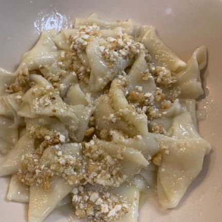 Tıkla veGörseli Büyüt:Kaşık AtmasıUn, su ve tuz karıştırılır, içine 1 yumurta kırılarak ele yapışmayacak bir kıvama gelene kadar yoğrulur. Elde edilen hamur bezelere bölündükten sonra oklavayla açılır. Hamur açıldıktan sonra kare kare kesilerek üçgen şeklinde içi boş olarak kapatılır. Bir tencerede su kaynatılır, hamurlar içine atılır. Hamurlar haşlanırken ayrı bir yerde tereyağı eritilir ve içine rendelenen peynir ile dövülmüş ceviz ilave edilir, biraz kavurduktan sonra altı kapatılır. Haşlanan hamurlar süzülür ve geniş bir tabağa aktarılır, üzerine cevizli tereyağlı sos gezdirilerek servis edilir.