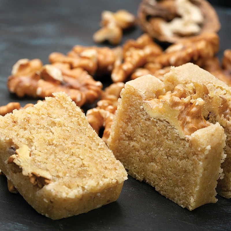 Tıkla veGörseli Büyüt:Ceviz Ezmesi2 su bardağı şeker yarım su bardağı ile kaynatılır. Kıvamlı bir hâle getirilir. Üzerine irmik ve ceviz eklenir. İyice karışan malzemeler pudra şekeri dökülmüş tepsiye dökülür ve her yeri eşit olacak şekilde yayılır. Baklava dilimi şeklinde kesilerek servis edilir.