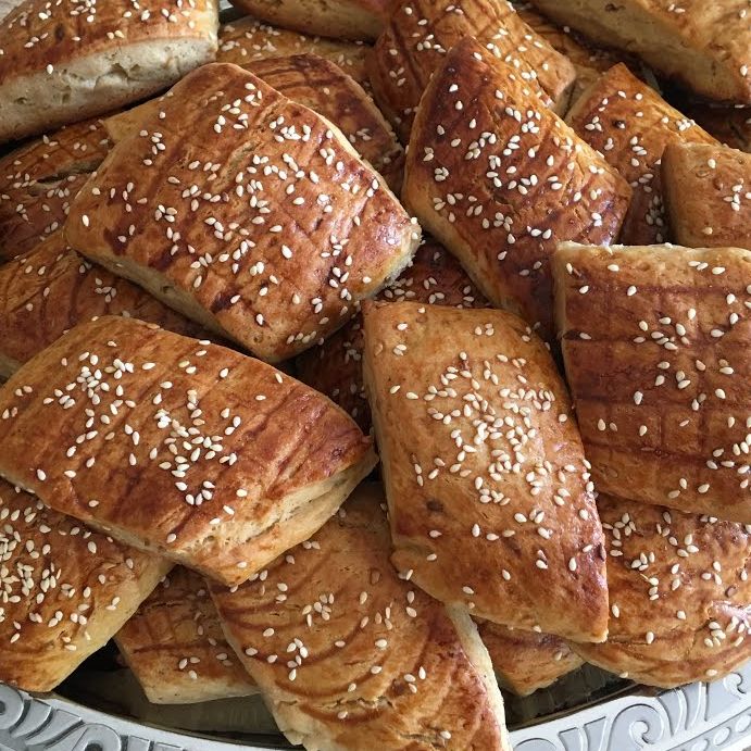 Yaş maya bir kaba alınarak üzerine ılık su ilave edilir ve hafif karıştırarak mayanın erimesi sağlanır, üzerine kesme şeker eklenir ve tekrar karıştırılır. Un, mahlep, kavrulmuş susam, eritilen maya, çörek otu, eritilmiş tereyağı, tuz ve ılık süt ele yapışmayacak bir kıvama gelene kadar yoğrulur. Hazırlanan hamurun üzeri streç filmle kapatıldıktan sonra 1 saat mayalanmaya bırakılır. Mayalanan hamur unlu tezgâhta merdane yardımıyla hafifçe açılır, bıçak ile dikdörtgen şeklinde kesilir ve üstüne bıçağın ters kısmıyla şekiller verilir. Kesilen hamurlar yağlanıp unlanan fırın tepsisine aktarılır, üstlerine fırça yardımıyla yumurta sarısı sürülerek susam serpiştirilir. Son olarak önceden ısıtılmış 180 derece fırında üstü kızarana kadar yaklaşık 20 dakika pişirilir.