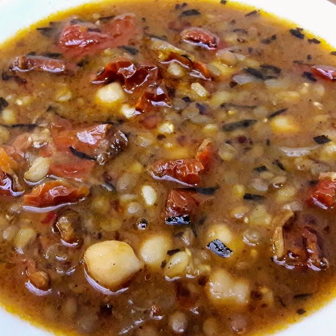 Nohut ve dövmeyi bir taşım kaynatın. Ayrı bir yerde mercimeği de haşlayıp nohutların üzerine ilave edin. Tencereye su koyup tüm malzemeyi birkaç dakika kaynatın. Ardından soğan, tuz ve biberleri de ekleyip pişmeye bırakın. Bu sırada, ayrı bir yerde tereyağ eritin. Üzerine salça, pul biber ve tarhun koyup bir yağ hazırlayın. Servise hazır hâle gelen çorbayı yağ ile buluşturup sıcak şekilde tüketin. Afiyet olsun.