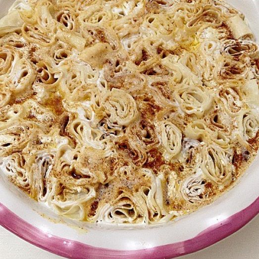 Tıkla veGörseli Büyüt:Sironİnce rulolar şeklinde sarılan yufkalar 3-4 mm uzunluğunda kesilir, kesilen parçalar tepsiye kesilen yerler üste gelecek şekilde dizilir. Üzerine bolca sarımsaklı yoğurt dökülür, eritilmiş tereyağı gezdirilerek servis edilir.