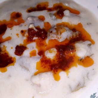 Tıkla veGörseli Büyüt:DoğabaBir kaba alınan kıyma üzerine bulgur ilave edilir, ara ara sıcak su dökülerek yoğrulur ve nane, pul biber, tuz eklenerek yoğurmaya devam edilir. Yoğurduktan sonra şekillendirilir. Düdüklü tencerede aşurelik buğday haşlanır, üzerine kemikli et ilave edilir ve 1 yemek kaşığı tuz ile 1 su bardağı sıcak su eklenerek haşlanır. Ayrı bir tencerede yoğurt, yumurta, un karıştırılır, üzerine sıcak dökülür, kaynayana kadar karıştırmaya devam edilir. Kaynadıktan sonra içerisine 1 yemek kaşığı tuz, köfteler, et ve aşurelik buğday eklenerek kaynamaya bırakılır. İyice kaynadıktan sonra bir süre dinlendirilir. Sıvı yağ nane, pul biber ve kekik ile kızdırılarak üzerine gezdirilir.