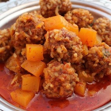 Tıkla veGörseli Büyüt:DolemeKıyma, baharatlar, tuz ve kırık pirinç iyice yoğrulur. Bal kabağı çok iri olmayacak şekilde küp küp doğranır. Hazırlanan kıymadan ceviz büyüklüğünde top köfteler yapılır. Tencereye biraz yağ, ardından salça eklenerek kavrulur, su eklenir ve kaynayınca köfteler içine atılır, biraz piştikten sonra bal kabakları ilave edilir. Son olarak içerisine birkaç dal reyhan eklenerek pişirilir.