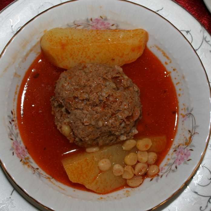 Tıkla veGörseli Büyüt:Taş KöfteEt iyice dövülür, ardından salça, ayçiçek yağı, ince kıyılmış maydanoz, lepe ve pirinç eklenerek yoğrulur. Yoğrulan etin üzerine sarıkök, karabiber serpilerek yumurta kırılır ve tekrar yoğrulur. İyice yoğurduktan sonra avuç içinde yuvarlanır, orta boy patates büyüklüğünde köfteler yuvarlanır. Diğer yanda ince kıyılmış soğanlar margarin ile kavrulur. Salça ve su ilave edilerek suyun kaynaması beklenir, ardından köfteler suya atılır, 5 dakika kaynatılarak 5-6 parçaya bölünen patatesler eklenir son olarak tuzu atılır ve bir süre daha kaynatılır.