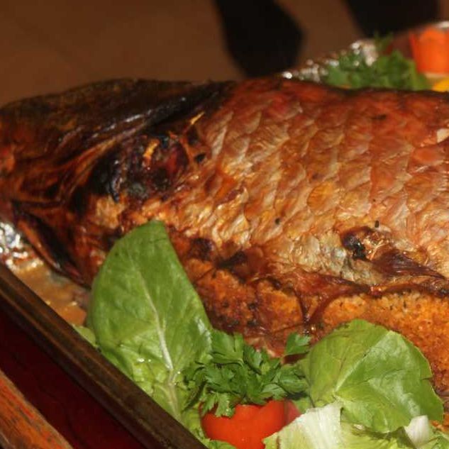Öncelikle sazan balığının derisi tamamen soyulur, sırtındaki yüzgeç ve kanatları temizlenir. Salça, yağ ve baharatlar karıştırılarak sos hazırlanır, balığın içine ve dışına tamamen sürülür, 15 dakika bekletilir. Yağ tencerede kızdırılır, varsa balıktan çıkan havyar, yumurta sarısı rengini alana kadar kızartılır ardından baharatlar, bulgur veya pirinç, çam fıstığı, kuş üzümü eklenerek bir süre kavrulur, su ilave edildikten sonra demlenmeye bırakılır. Hazırlanan bu karışım balığın içine doldurulur ve balık iğne iplik yardımıyla dikilir. Fırında 2 saat pişirildikten sonra üzeri maydanoz, domates ve limonla süslenerek servis edilir.