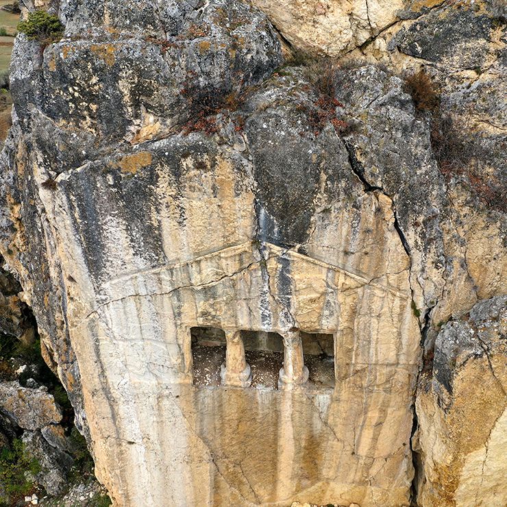 M.Ö. 7. yüzyılın ortalarında yapılan kaya mezarlarında; boğa ve aslan figürleriyle, ‘’griffon’’ adında bir mitolojik yaratık bulunur.