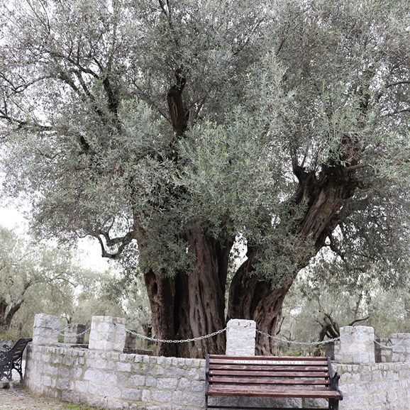 Etrafı çevrilen ve insanın doğaya saygısını ifade etmek için korunan yaşlı ve büyük zeytin ağacı ilçedeki zeytin tarımını da simgeler.