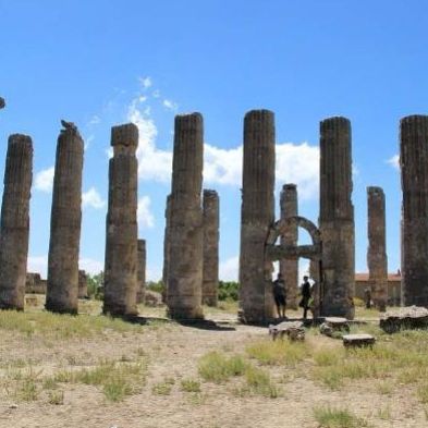 Tıkla veGörseli Büyüt:Jüpiter TapınağıJüpiter Tapınağı’nın her biri 10 metre boyundaki sütunlarından yalnızca biri günümüze ulaşmıştır. Tapınağın Zeus için yapıldığı düşünülmektedir. Bir başka düşünceye göre güneş ve sanat tanrısı Apollon için de yapılmış olabilir. Tapınak için 1980 yılında başlatılan kazı çalışmaları devam etmektedir.