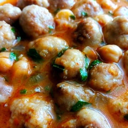 Rendelenmiş soğanın üzerine kıyma, un, yumurta, karabiber ve tuz ilave edilerek güzelce yoğrulur. Yoğrulan köfte harcından yumurta büyüklüğünde parçalar koparıldıktan sonra un serpilmiş tezgâh üzerinde, her parça yuvarlanarak uzun silindir şekline getirilir. Hazırlanan ince şeritlerden fındık büyüklüğünde parçalar koparılıp yuvarlanır ve misket şekline getirilir. Ardından misket köfteleri hafif unlanan tepsiye alınır. Bir tavada yağ kızdırılır, köfteler çevrilerek kızartılıp bir kenara alınır. Çukur bir tencerede 2 yemek kaşığı tereyağı eritilir, üzerine bir miktar sıvı yağ ilave edilir, domates ve biber salçaları eklenip kavrularak kızartılmış köfteler ve haşlanmış nohut eklenir, biraz karıştırıldıktan sonra üzerini 2 parmak geçecek kadar su dökülür ve pişmeye bırakılır. Bir kapta sarımsaklar iyice dövülür, limon suyu ile karıştırılır, pişmekte olan köfteye eklenerek 6-7 dakika daha pişirilir. Üzerine kıyılmış maydanoz serpilerek servis edilir.