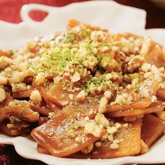 Tıkla veGörseli Büyüt:VarakkaakHamur için un ve tuz bir yoğurma kabına alınır, ortası havuz gibi açılan karışıma 1 kahve fincanı su ilave edilir, pürüzsüz, sert bir hamur elde edilinceye kadar yoğurulur. Oda sıcaklığında 20 dakika dinlendirildikten sonra tezgâhta yarım cm kalınlığında açılır. Küçük kareler şeklinde kesilen hamurlar bir bezin üzerine konulur. Elde edilen küçük kare hamurlar, oda sıcaklığında yarım saat boyunca kurutulur. Bu zaman diliminde pekmez, su ve margarin karıştırılıp kaynatılır. Kaynayan karışıma kesilen hamurlar atılır, 15 dk kadar pişirilir. Pişen hamurlar süzülerek servis tabağına alınır, üzerlerine çekilmiş ceviz ve Antep fıstığı serpiştirilir. Ilık veya soğuk hâlde servis edilir.