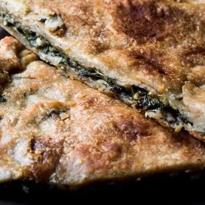 Hamur için gerekli olan tüm malzemeleri yoğurup kulak memesi kıvamı elde edin. Ardından hamuru iki bezeye ayırıp yarım saat kadar dinledirin. Bu sırada soğanı, sıvı yağ ile kavurun. Üzerine ıspanağı ekleyip birkaç dakika daha karıştırarak ocaktan alın. Ispanağın sıcağı çıkınca beyaz peynir ve baharatları ilave edip güzelce harmanlayın. Daha sonra dinlenen bezeleri, yufka genişliğinde açın. Üzerlerine sıvı yağ ve eritilmiş tereyağı sürün. Akabinde yufkaları, ortaları sabit kalacak şekilde dilimlere ayırın. Tüm dilimleri, orta kısma doğru katlayıp birleştirin. Bu işlemin ardından yufkaları bir kez daha açın. İlk katı, yağlanmış fırın tepsisine yerleştirip ortasına ıspanaklı içten dökün. İkinci katı da yerleştirip kalan yağ karışımını böreğin üzerine gezdirin. Ardından yemeği odun ateşinde ya da 200 derece fırında, üzeri kızarana kadar pişirin. Afiyet olsun.
